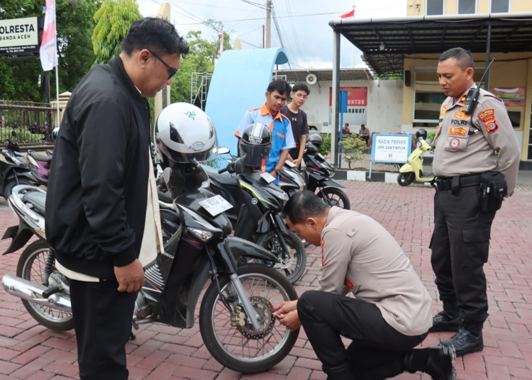 Pembagian serta pemasangan kunci ganda berupa gembok dilakukan di halaman parkir Mapolresta Banda Aceh, Selasa (8/7/2025) pagi.