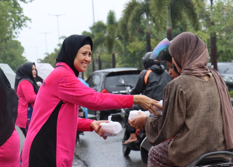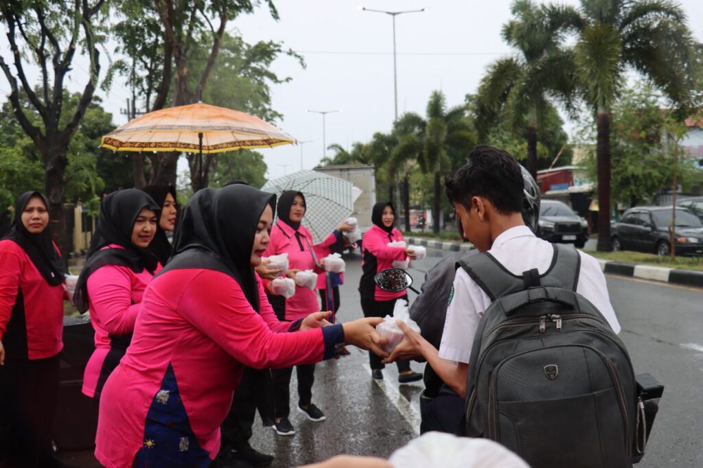 Setelah matang, bubur dibagi dalam mangkuk-mangkuk, lalu dibagikan kepada warga yang melintasi jalan depan Asrama Polisi Punge. Disini terlihat ada kebahagiaan sederhana saat melihat senyum mereka yang menerima. Tradisi ini juga jadi sarana berbagi rezeki dan memperkuat silaturahmi antarwarga, di luar perbedaan status sosial, ucap Ny Ria Joko.