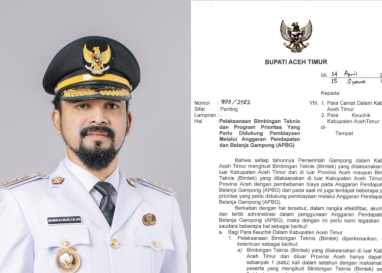 Surat Kebijakan bernomor 893/2182 tersebut ditujukan kepada seluruh Camat dan Keuchik dalam wilayah Kabupaten Aceh Timur. Dalam kebijakan itu, Bupati menyampaikan bahwa pelaksanaan Bimtek yang selama ini rutin dilakukan setiap tahun, baik di dalam maupun luar daerah, kini hanya diperbolehkan maksimal satu kali dalam setahun untuk setiap gampong. Jumlah peserta pun dibatasi maksimal dua orang per gampong, dengan syarat topik bimtek harus sesuai dengan tugas pokok dan fungsi masing-masing peserta.