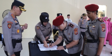 Acehvoice.net, Banda Aceh - Kapolresta Banda Aceh Kombes Pol Joko Heri Purwono melantik Kabagops Kompol Rubby Nanda, Kasatreskrim AKP Donna Briadi dan Kasat Tahti Ipda Jakfar di Meuligoe Rastra Sewakottama,...