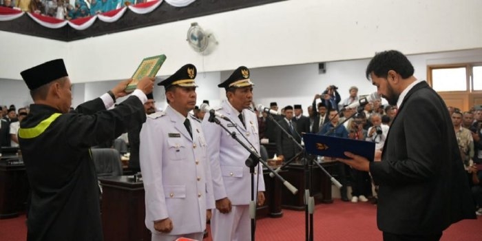Acehvoice.net, Meureudu — Gubernur Aceh, Muzakir Manaf, resmi melantik Sibral Malasyi dan Hasan Basri sebagai Bupati dan Wakil Bupati Pidie Jaya, dalam rapat paripurna DPRK Pidie Jaya, pada Selasa, (18/2/2025).