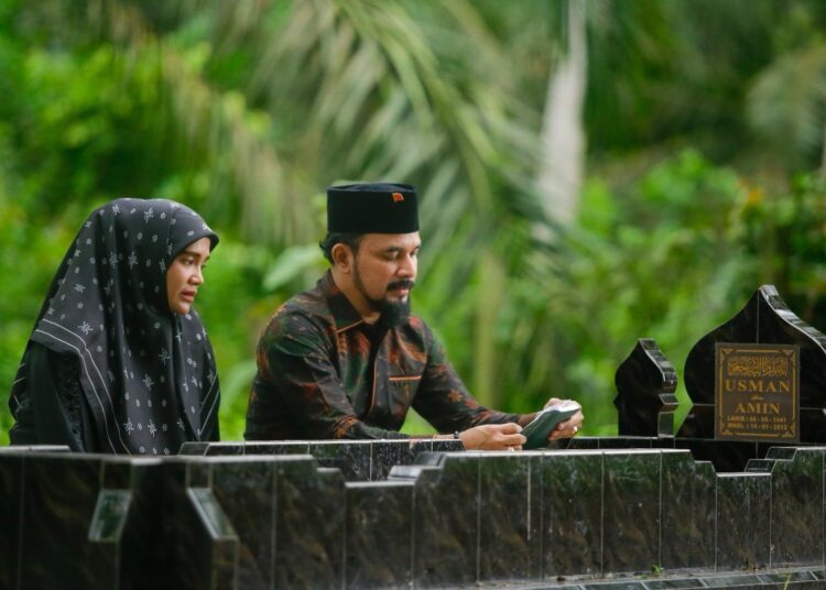 Acehvoice.net – PEUREULAK–Calon Bupati Aceh Timur dari Partai Aceh, Iskandar Usman Al-Farlaky, S.Hi, M.Si , bersama isteri, dan salah satu abang kandungnya menziarahi makam almarhum ayahandanya di Gampong Seuneubok Johan, Kecamatan Ranto Peureulak, Rabu (28/8/2024)