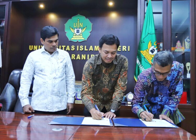 Acehvoice.net – Fakultas Ekonomi dan Bisnis Islam (FEBI) Universitas Islam Negeri (UIN) Ar-Raniry Banda Aceh menandatangani naskah kerja sama (MoA) dengan Fakultas Bisnis dan Ilmu Sosial (FBIS) Universitas Dian Nusantara (UNDIRA). Kerja sama tersebut antara lain tentang ketahanan ekonomi di Aceh dan Indonesia.