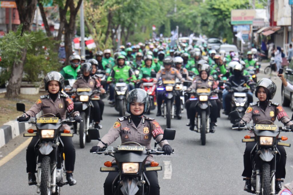 Selama aksi, ratusan ojol mendapat pengawalan secara humanis dari pihak kepolisian.