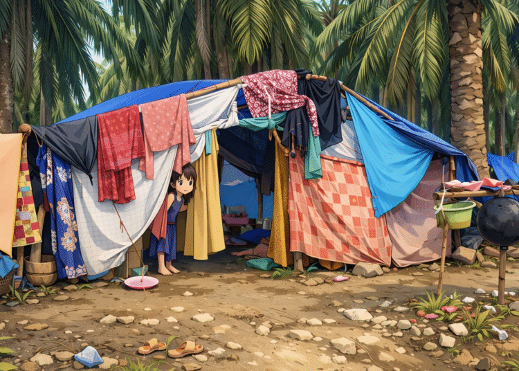 acehvoice.net – Aceh Utara – Ratusan korban banjir dari Dusun Bahagia, Gampong Rumoh Rayeuk, Kecamatan Langkahan, Kabupaten Aceh Utara, hingga kini masih bertahan di tenda pengungsian yang tidak layak huni. Tenda darurat tersebut hanya terbuat dari terpal biru dengan dinding kain sarung dan didirikan secara seadanya di kebun sawit Dusun Bola Mas, Gampong Langkahan.