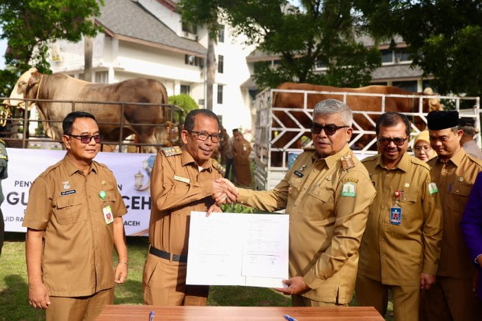 Hadir dalam prosesi penyerahan itu, Pj Sekda Aceh Azwardi, Asisten Administrasi Umum Sekda Aceh Iskandar, dan Kepala Dinas Peternakan Aceh Zalsufran.[]