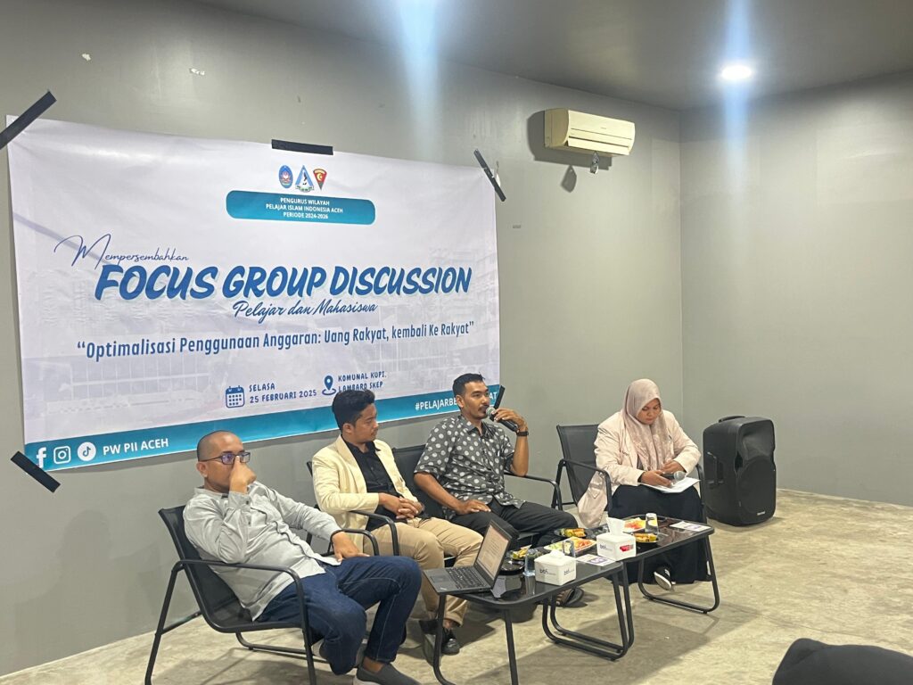 Acehvoice.net, Banda Aceh – 25 Februari 2025 – Pengurus Wilayah Pelajar Islam Indonesia (PII) Aceh menyelenggarakan sebuah kegiatan Focus Group Discussion (FGD) yang bertujuan untuk mendiskusikan tentang optimalisasi penggunaan anggaran yang bersumber dari rakyat. Kegiatan ini dilaksanakan di Komunal Kupi Lambaro Skep, Banda Aceh, pada 25 Februari 2025. Bertemakan “Optimalisasi Penggunaan Anggaran: Uang Rakyat Kembali ke Rakyat”, FGD ini dihadiri oleh berbagai tokoh penting serta mahasiswa, pelajar, dan praktisi yang kompeten di bidangnya.