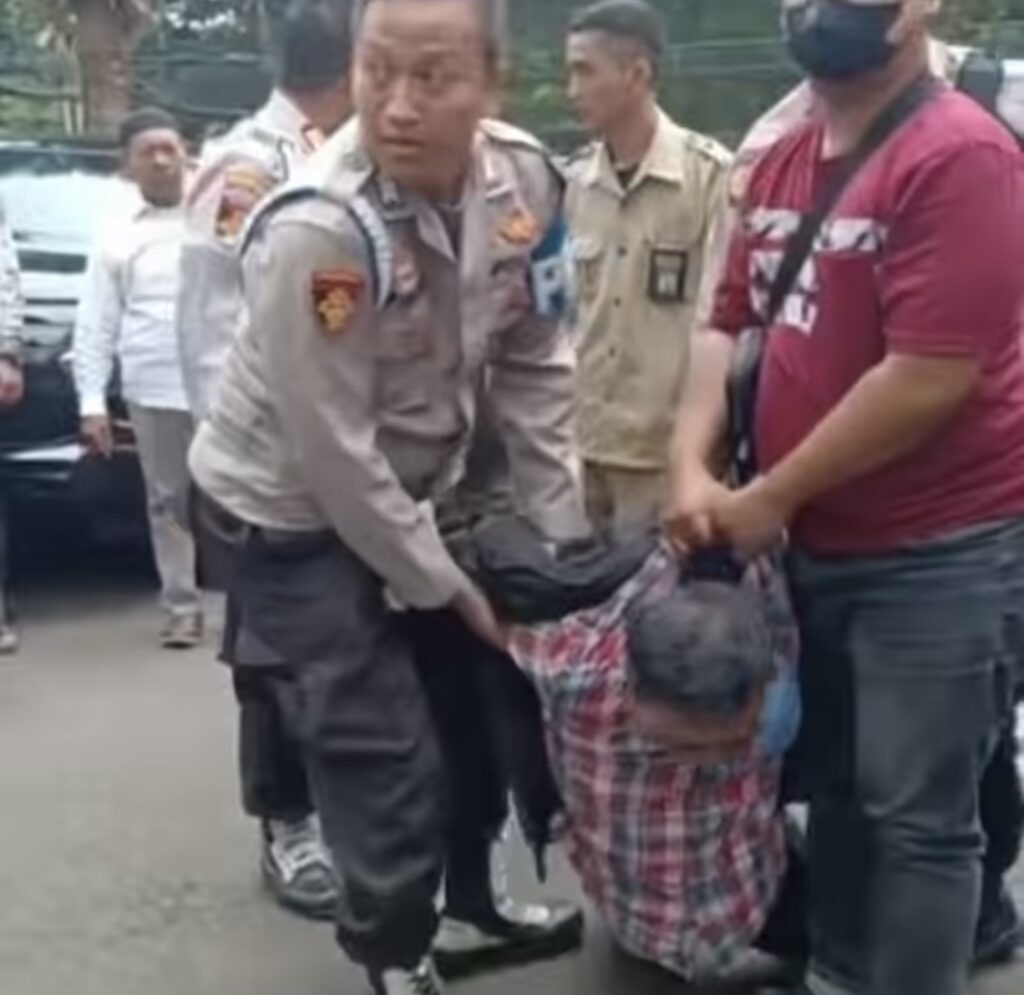 Sementara itu, pada foto lain ada pula seseorang yang diduga pelaku sedang diamankan.