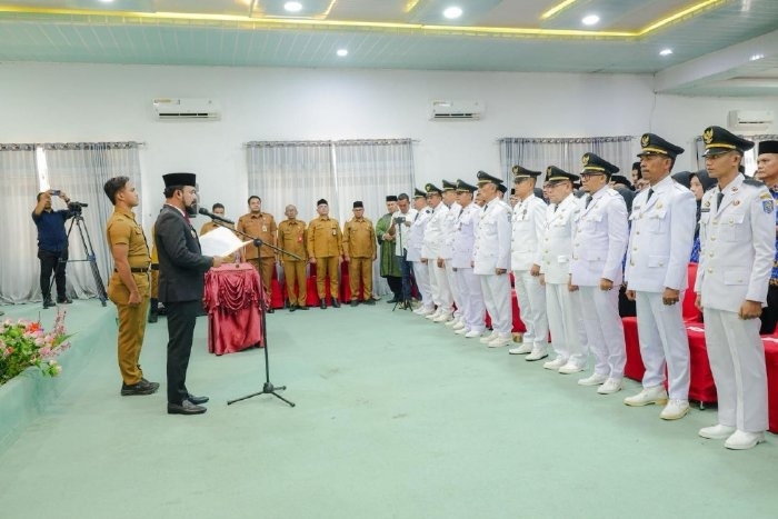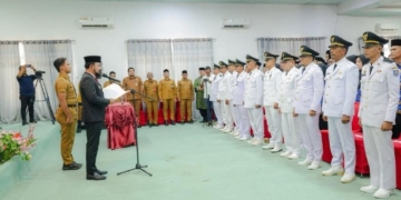 acehvoice.net — Aceh Timur — Bupati Aceh Timur, Iskandar Usman Al-Farlaky, melantik sebanyak 145 pejabat administrator dan pengawas di lingkungan Pemerintah Kabupaten Aceh Timur. Prosesi pelantikan berlangsung di Aula Serbaguna Pendopo Bupati, Senin (30/3/2026). Dari jumlah tersebut, 14 orang di antaranya merupakan camat, sementara 131 lainnya menjabat sebagai pejabat pengawas.