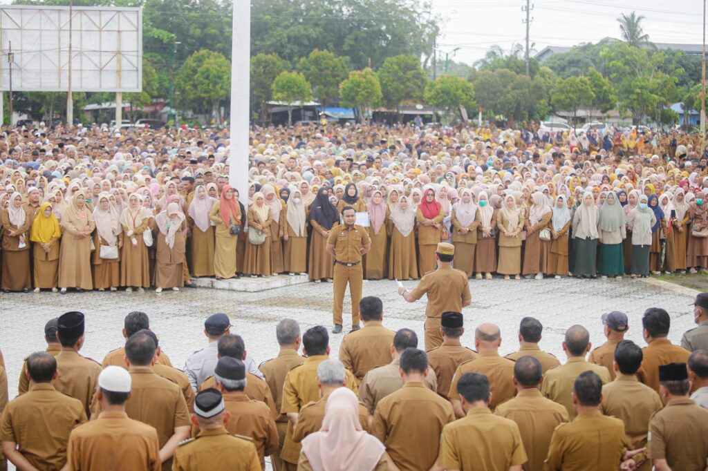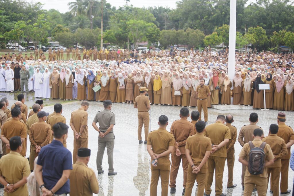 Acehvoice.net – IDI RAYEUK – Bupati Aceh Timur, Iskandar Usman Al-Farlaky, S.H.I., M.Si., memimpin apel perdana bersama Aparatur Sipil Negara (ASN) di lingkungan Pemerintah Kabupaten Aceh Timur. Apel yang diikuti ribuan ASN ini berlangsung di lapangan upacara Pemerintah Kabupaten Aceh Timur, Senin (25/3/2025).