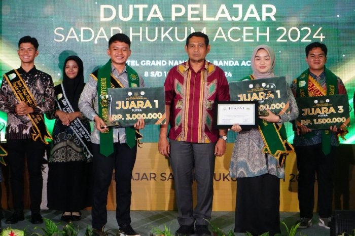 Ia juga berharap para duta yang terpilih dapat menjadi inspirasi di daerah masing-masing serta berperan aktif dalam menyebarluaskan kesadaran hukum di lingkungan mereka. Sedangkan untuk juara 2 Putra: Muhammad Afgan (SMAN 1, Bireuen). Putri: Stevani Havizni Putri (SMAN 1 Bandar, Bener Meriah). Juara 3: Putra: Aulya Ghyfar Firmanda (SMA Unggul Tunas Bangsa, Abdya). Putri: Erwalin Edla (SMAN 1 Seunagan, Nagan Raya).