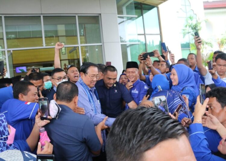 Acehvoice.net – Presiden RI Ke-6, Susilo Bambang Yudhoyono (SBY), tiba di Aceh melalui Bandara Sultan Iskandar Muda, Aceh Besar. Kehadiran SBY didampingi ketua umum partai Demokrat, Agus Harimurti Yudhoyono (AHY) dan rombongan lainnya.