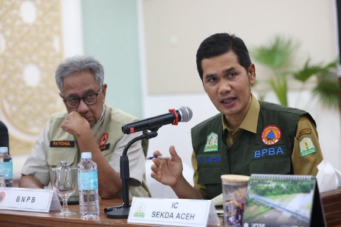 acehvoice.net – Banda Aceh – Sekretaris Daerah Aceh, M. Nasir memimpin rapat evaluasi harian penanganan bencana hidrometeorologi Aceh Tahun 2025 di Pos Komando Tanggap Darurat, Senin 1 Desember 2025. Dalam rapat tersebut, Sekda memaparkan perkembangan kondisi terkini wilayah terdampak, sekaligus menekankan pentingnya pembukaan jalur laut dan udara sebagai salah satu kunci percepatan distribusi logistik dan evakuasi warga