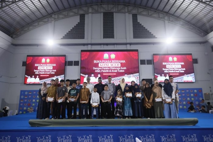 Pernyataan tersebut disampaikan dalam acara buka puasa bersama KONI Aceh dengan atlet, pelatih, pelaku olahraga, serta anak yatim di GOR Persatuan Angkat Besi dan Binaraga, Minggu (8/3/2026).
