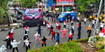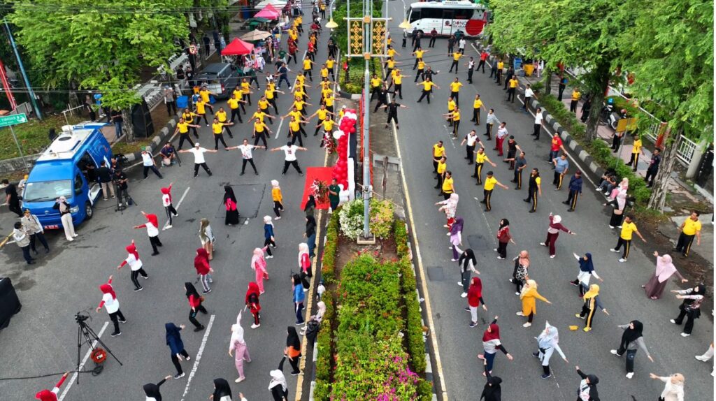 Acehvoice.net, Banda Aceh – Sambut Hari Ulang Tahun ke-80 Kemerdekaan Republik Indonesia Tahun 2025, Polresta Banda Aceh menggelar olahraga bersama ratusan masyarakat di lokasi Car Free Day, Minggu (10/8/2025).
