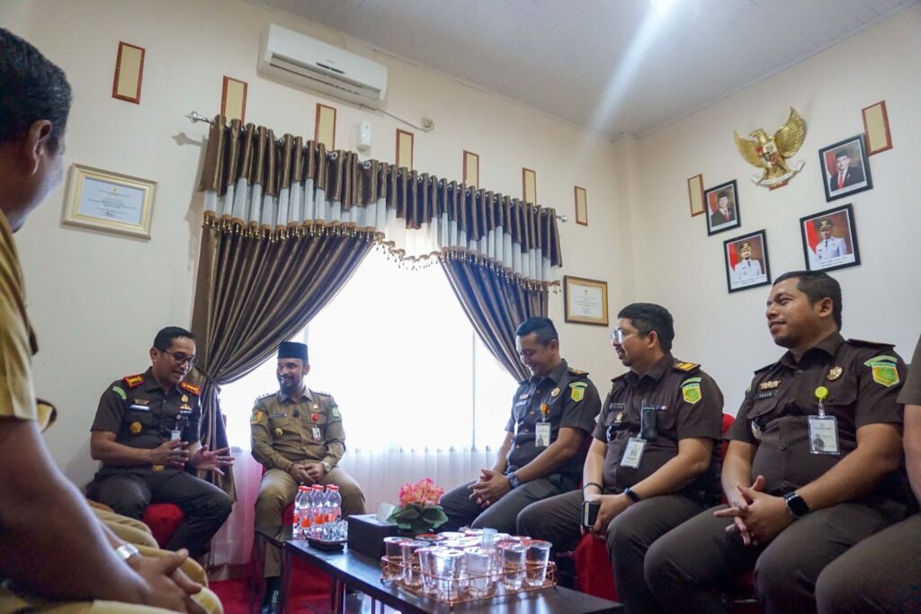 Bupati Aceh Timur Iskandar Usman Al- Farlaky, S.H.I, M.SI menyambut baik kunjungan Kajari dan menyampaikan pentingnya membangun kolaborasi yang solid dengan seluruh instansi vertikal.