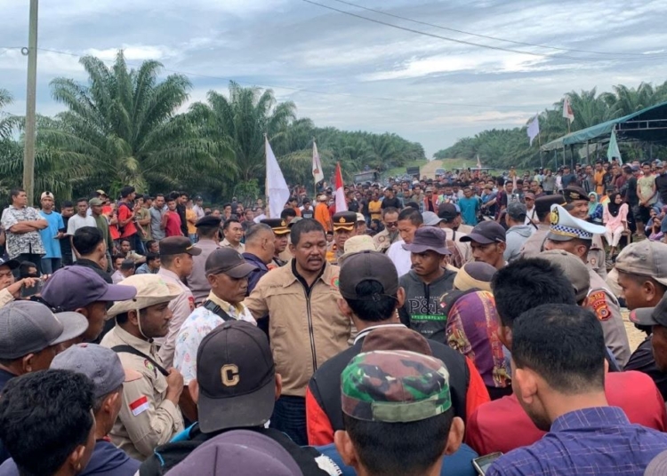 Dalam aksi tersebut, massa memblokir jalan utama agar truk pengangkut tandan buah segar (TBS) kelapa sawit tidak bisa keluar menuju pabrik pengolahan (PKS). Namun, pekerja kebun tetap diizinkan beraktivitas seperti biasa.