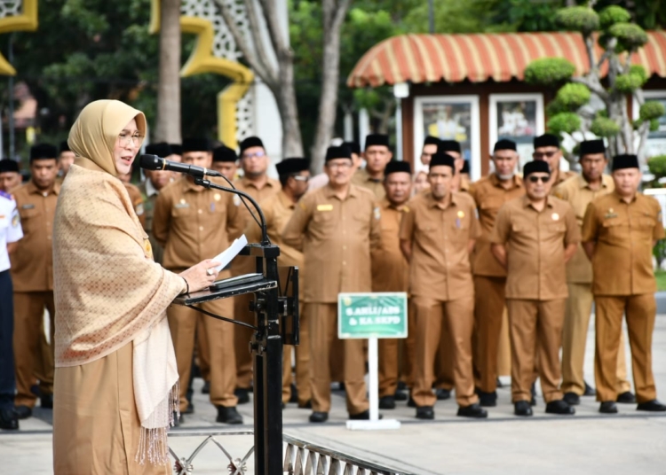 Acehvoice.net – Wali Kota Banda Aceh, Illiza Sa’aduddin Djamal, memimpin Apel Gabungan Aparatur Sipil Negara (ASN) bulan April yang berlangsung di halaman Balai Kota Banda Aceh, Senin (14/4/2025).