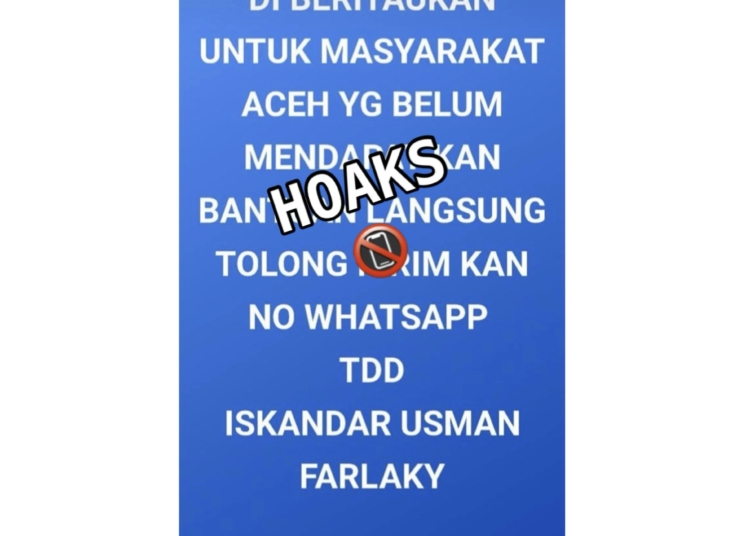 Dalam unggahan tersebut, akun palsu mengatasnamakan Bupati Aceh Timur dan menuliskan imbauan agar masyarakat Aceh yang belum menerima bantuan segera mengirimkan nomor WhatsApp. Menanggapi hal itu, Bupati Iskandar menegaskan bahwa informasi tersebut tidak benar dan merupakan tindakan penipuan.
